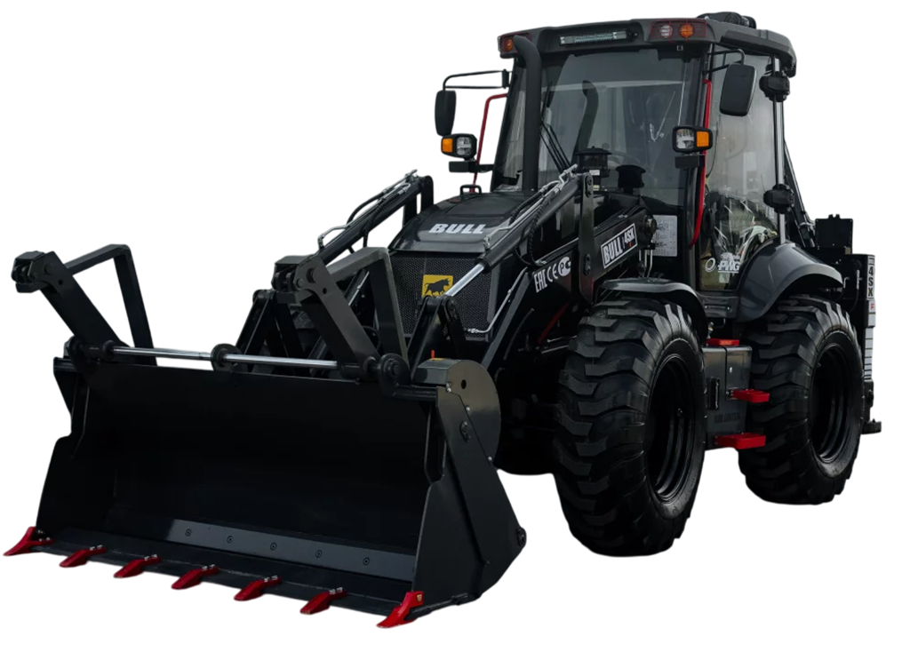 Экскаватор-погрузчик BULL 4SX-F сочетает премиальные комплектующие и доступную стоимость. Машина оснащена надежным двигателем Yuchai, гидравлической системой PWG и трансмиссией Carraro MYF120. Также установлены «мокрые» мосты Carraro AB092F/WAB092R с функцией блокировки заднего дифференциала и возможностью отключения полного привода.